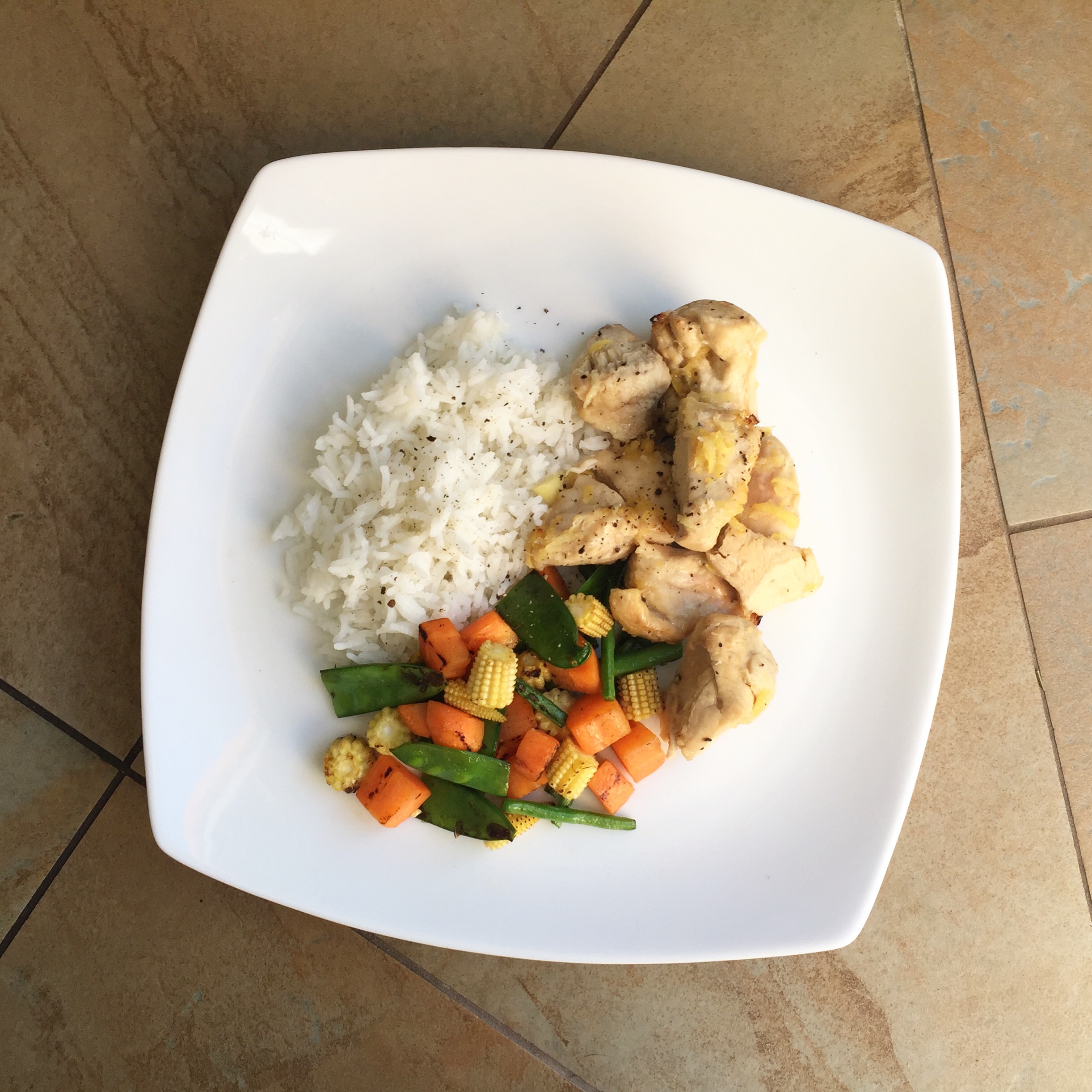 - Serve with rice and vegetables that you enjoy (I use green beans, carrots and baby corn all in low fodmap portion sizes.