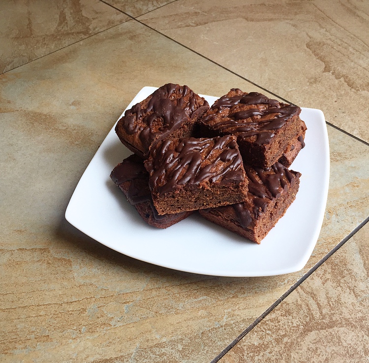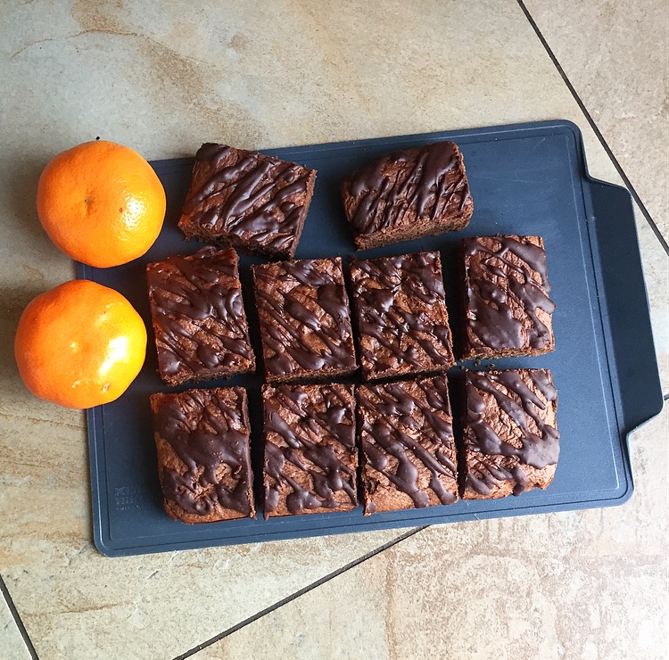 - To decorate: melt a few squares of dark chocolate in the microwave in 20 second intervals stirring between until just melted. Add in a 3 tsp orange juice. Mix together until fully combined. Microwave for a final 20 seconds to make it easy to drizzle on the top. Drizzle over the brownies and allow to harden in the fridge for at least 20 minutes.