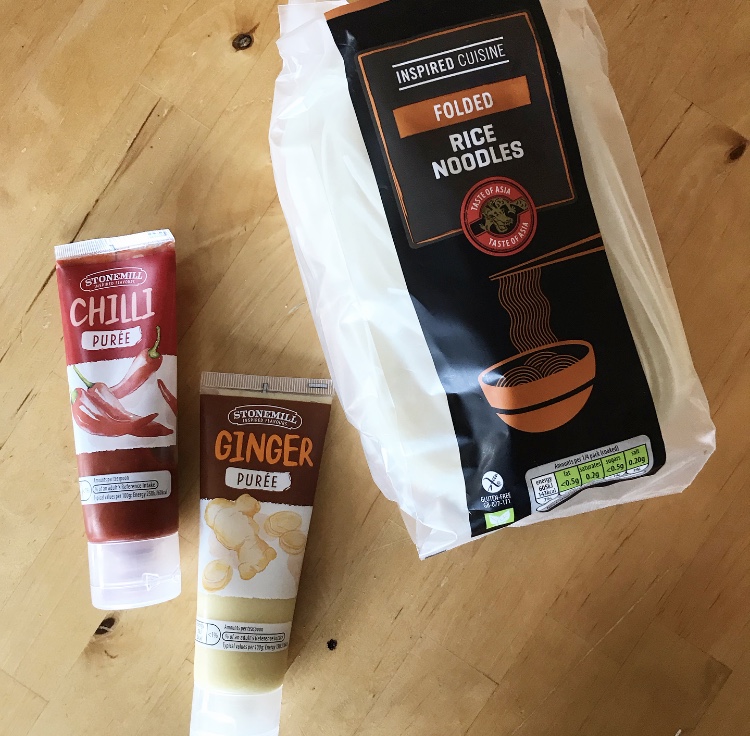 But this week, Ive tried super hard to refrain from quick and easy super market meals that I know will make me ill. So when I found rice noodles, ginger and chilli paste in Aldi, I decided that a spicy noodle dish that would take about 15 minutes to prepare was the way to go so that I could have something tasty to eat that wouldn’t be bad for my tummy.