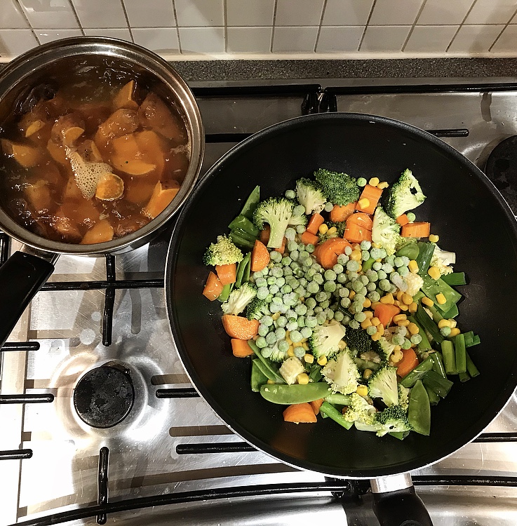 So then, all I needed was to decide which low FODMAP veggies I wanted in my curry experiment. I opted for carrots, peas, baby corn, mange tout, spinach, broccoli, spring onions (only the green tips) and sweetcorn. These were my choices but you could definitely adapt this for your favourites too.