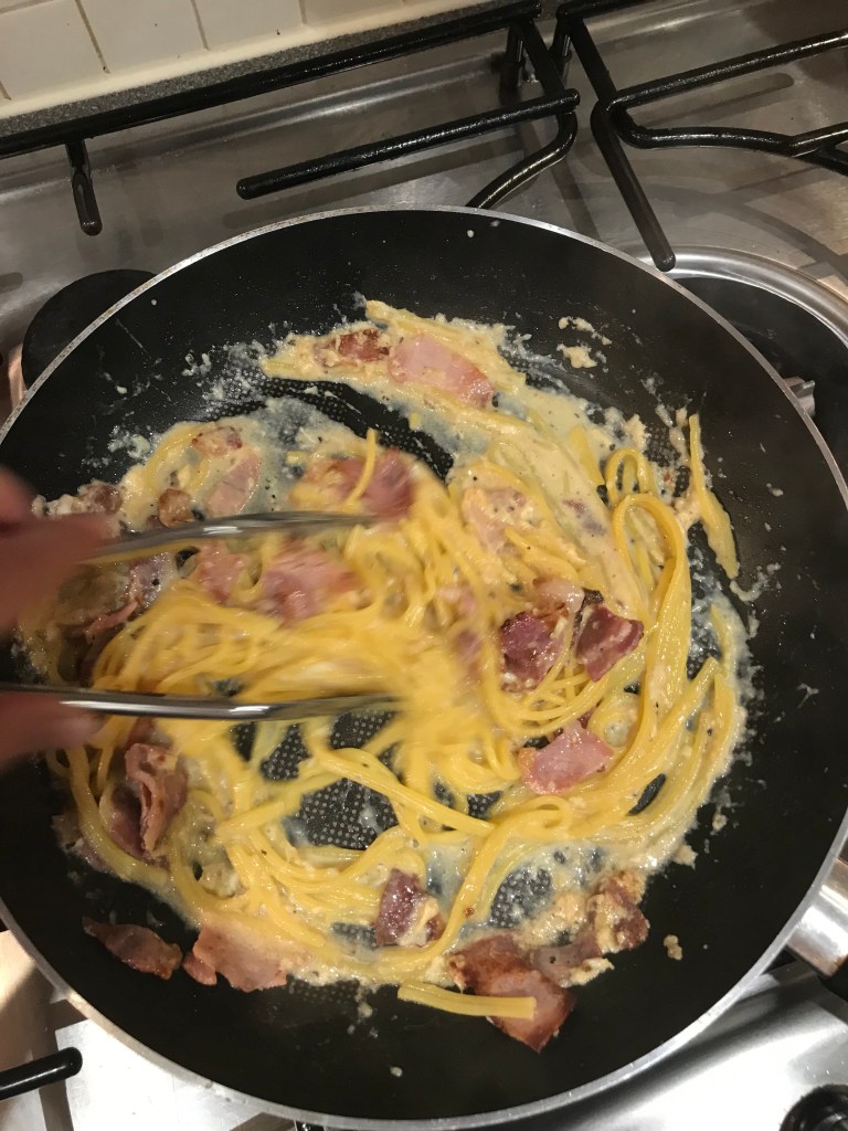 Anyway, enough of my ranting about the traditional way versus the British way! An almost traditional (with a few changes based on Low FODMAP and what I can find in shops near me that isn’t too expensive) spaghetti carbonara has become a staple in my diet!