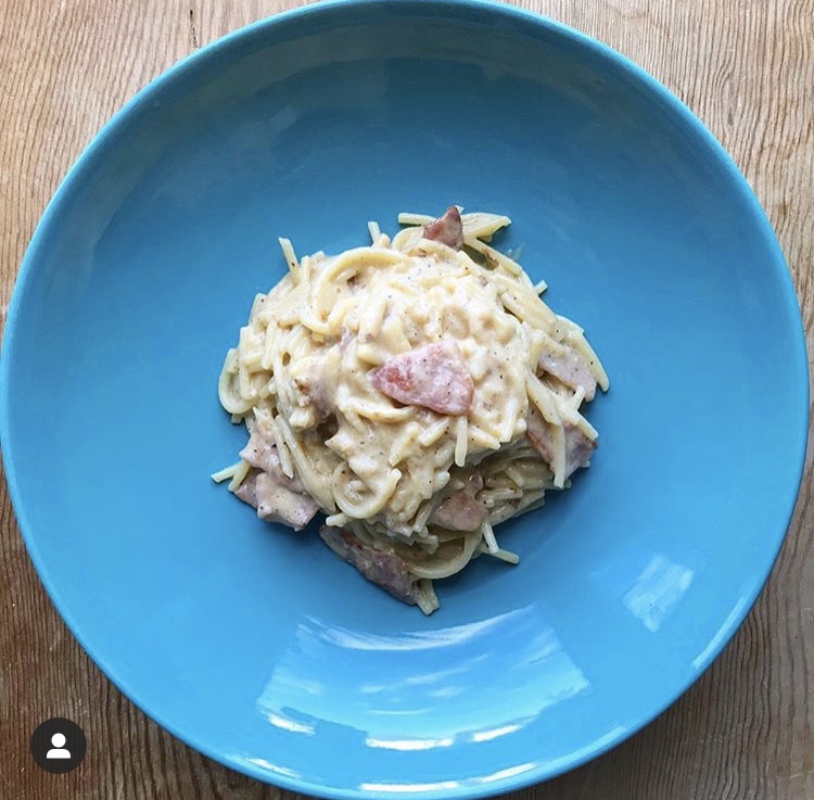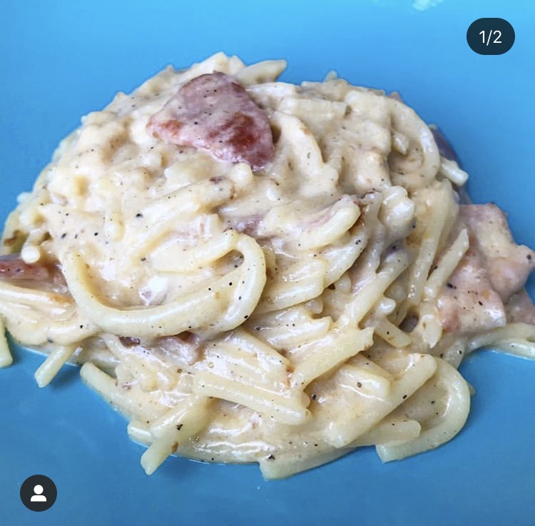 - 1 portion of gluten free spaghetti carbonara (based on your serving size of pasta)