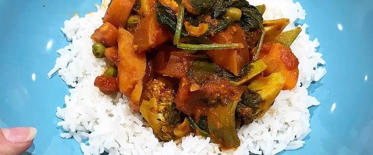 Low FODMAP, gluten free and vegan sweet potato, spinach and vegetable curry